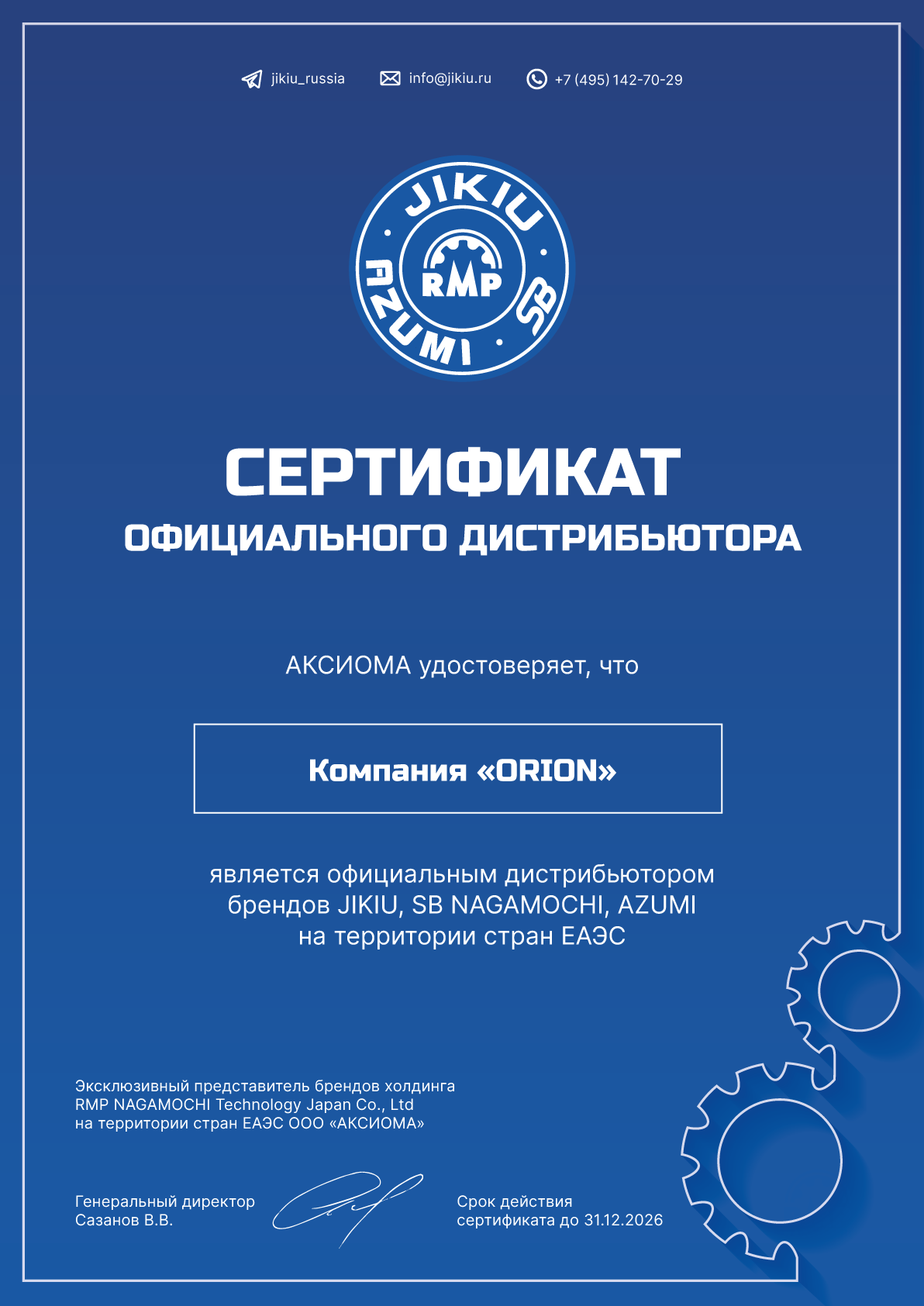 Сертификаты дистрибьютора "JIKIU, SB NAGAMOCHI, AZUMI"